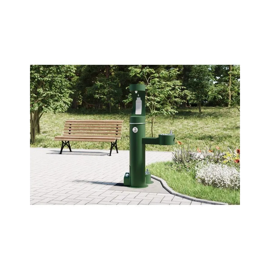 Зручна активація ніг для більш здорового наповнення пляшок у вільні руки. Активує лише наповнювач для пляшок і не активує прикріплені фонтани. Педаль не відключає кнопку наповнення пляшки. Кріпиться до нижнього отвору панелі доступу для надійного підключення та простоти установки. Зовнішнє покриття з нержавіючої сталі типу 316 із порошковим покриттям забезпечує захист від стихій. Доступний у 12 варіантах для узгодження з відкритими трубчастими станціями для заправки пляшок. Сумісний з окремими станціями для наповнення трубчастих пляшок на вулиці.