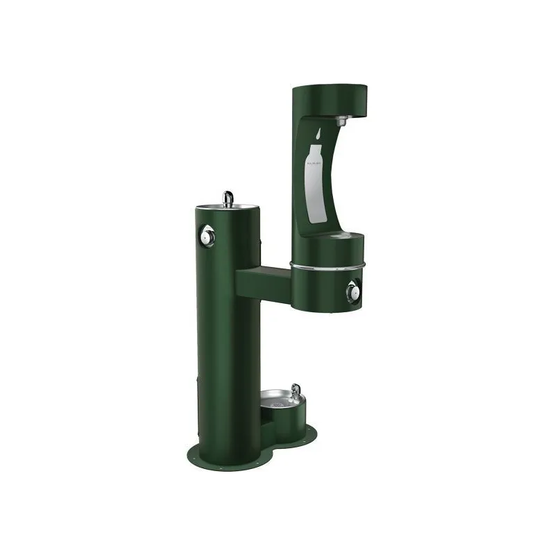Вуличний дворівневий питний фонтанчик із заправочною станцією для пляшок та зоостанцією для тварин UDF3312RH2OSZ з фільтрацією, без охолодження - Зелений